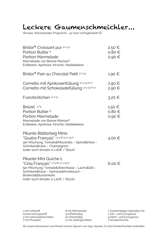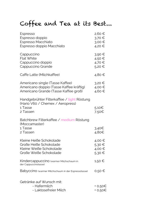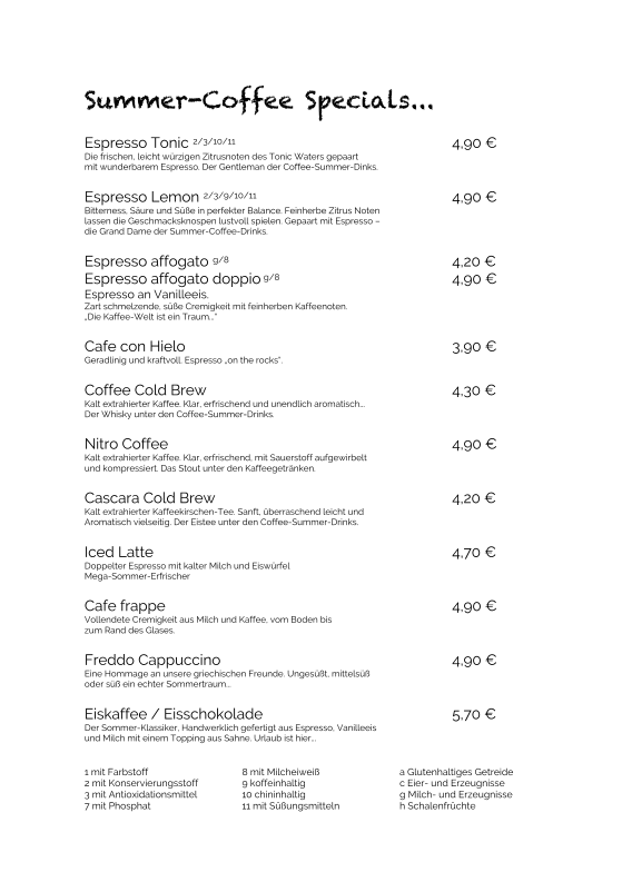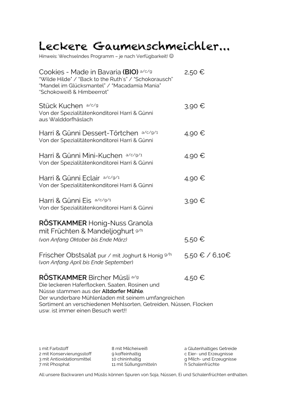 ROSTKAMMER - Kaffeerosterei Altdorf Menu